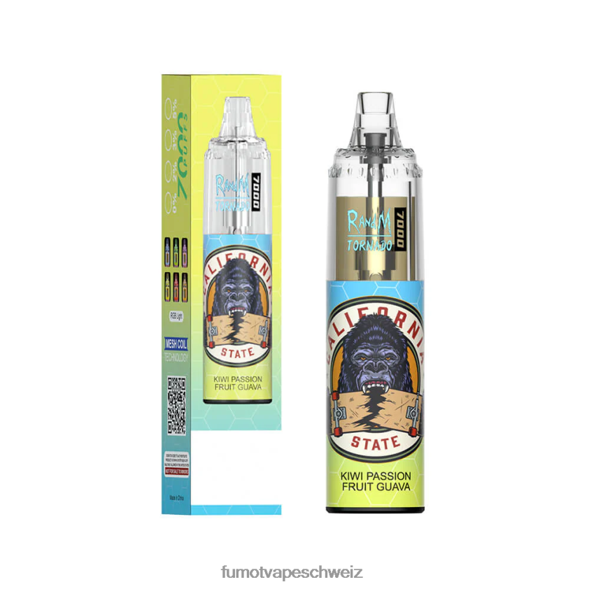 Der Fumot Tornado 7000 Puffs Einweg-Vaporizer ist einer der besten Einweg-Vapes von Fumot Tech! Jeder Tornado 7000 Einweg-Vape-Stift ist mit 14 ml vorgefüllt, was bis zu 7000 Züge reicht. Dieses Vape-Gerät verfügt über einen eingebauten 850-mAh-Akku und einen Typ-C-Ladeanschluss an der Unterseite. Beim Dampfen werden 6 RGB-Lichter angezeigt, was Ihnen im Dunkeln einen kühlen Kopf verschafft. Der Luftstrom-Regler kann um bis zu 30 Grad gedreht werden, sodass Sie die Größe des Rauchs nach Ihren Wünschen steuern können.